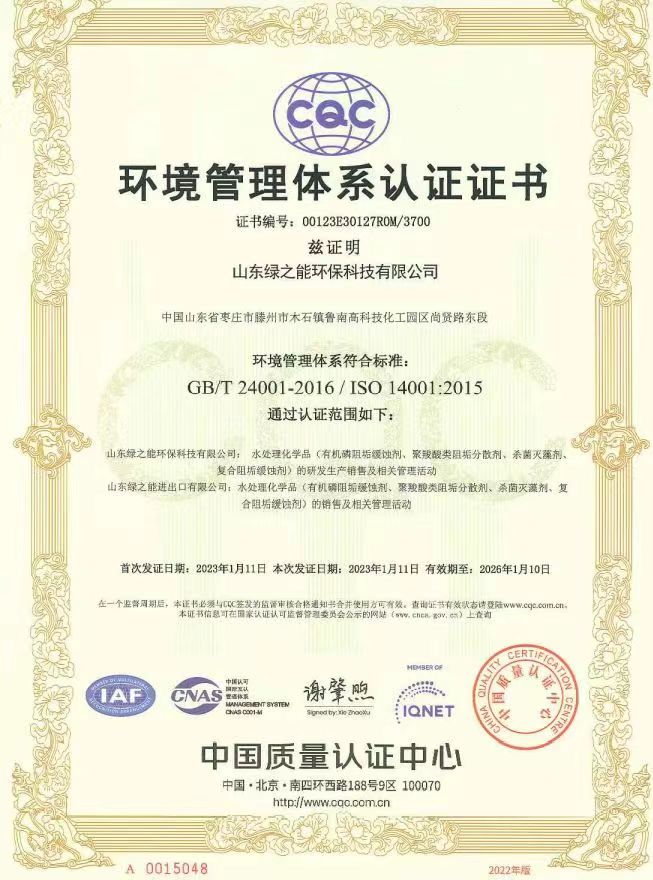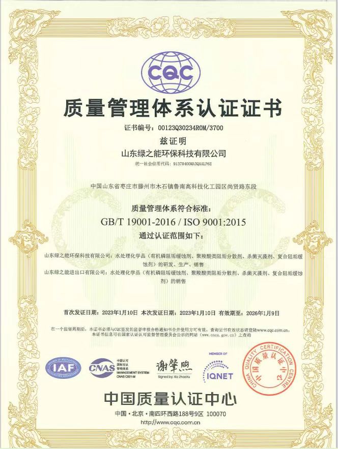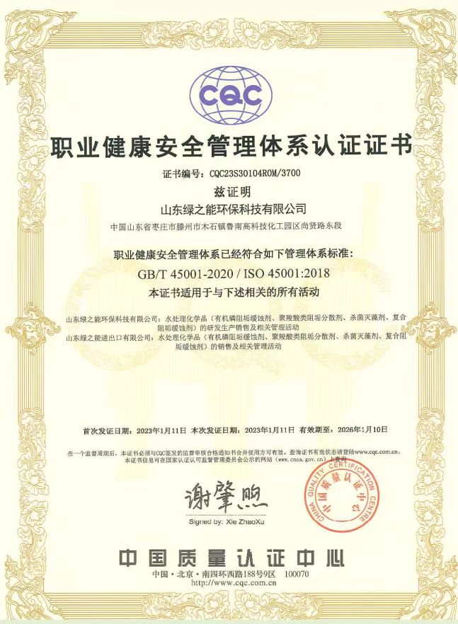 綠之能順利通過(guò)中國(guó)質(zhì)量認(rèn)證中心(CQC)的ISO專(zhuān)家評(píng)審組的審查,取得了ISO9001質(zhì)量管理體系認(rèn)證、ISO14001環(huán)境管理體系認(rèn)證、ISO45001職業(yè)健康安全管理體系認(rèn)證。
